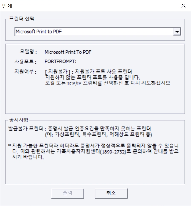 ๋จ, ์ฆ๋ช ์ ๋ฐ๊ธ ์ธ์ฆ์๊ฑด์ ๋ง์กฑ์ํค์ง ๋ชปํ๋ ํ๋ฆฐํฐ๋ ์ ์ ๋ฑ๋ณธ ๋ฐ๊ธ์ด ๋ถ๊ฐํ์ค๋ ํ๋ฆฐํฐ๊ฐ ์์์๋ ์ถ๋ ฅ์ด ๋ถ๊ฐ๋ฅํ๋ค๊ณ ๋์จ๋ค๋ฉด ํน์ ์ถ๋ ฅ์ด ์ ๋๋ก ๋์ง ์์ ๊ฒฝ์ฐ ๊ฐ์กฑ์ฌ์ฉ์์ง์์ผํฐ(1899-2732)๋ก ๋ฌธ์ํ์๊ธฐ ๋ฐ๋๋๋ค.