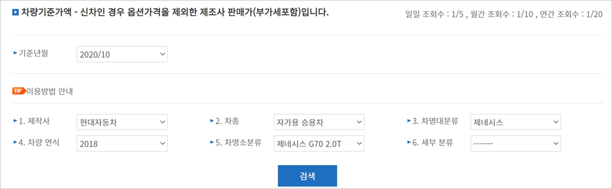 โป ์ ๋ณดํ๊ฐ๋ฐ์ ์ฐจ๋ ๊ธฐ์ค๊ฐ์ก ์กฐํ๋ ์ผ์ผ ์ต๋ 5ํ, ์๊ฐ ์ต๋ 10ํ, ์ฐ๊ฐ ์ต๋ 20ํ๊น์ง๋ง ๊ฐ๋ฅํฉ๋๋ค.