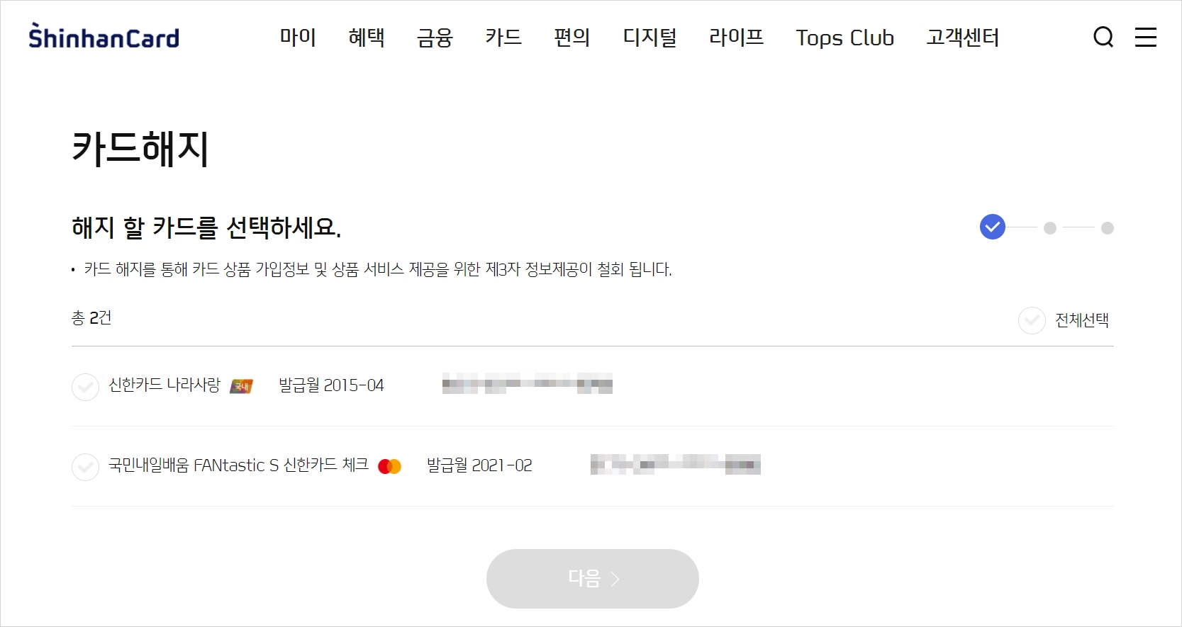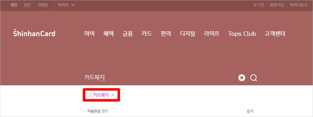 1. ์ ํ์นด๋ ํํ์ด์ง๋ก ์ด๋ํ ํ ์นด๋ ํด์ง๋ฅผ ๊ฒ์ํฉ๋๋ค.