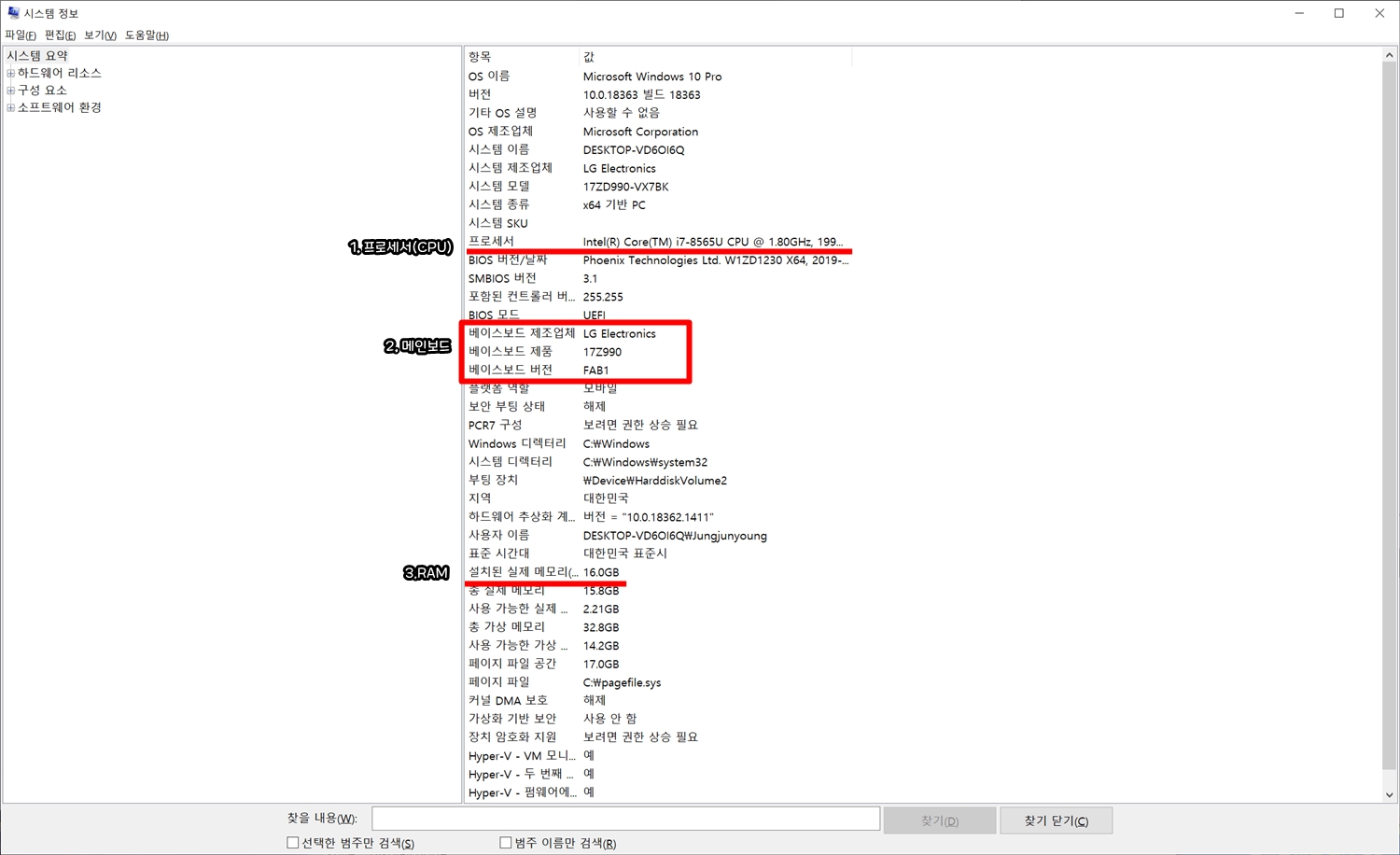 4. μμ€ν μμ½ νλ©΄μμ νλ‘μΈμ(CPU), λ©μΈλ³΄λ, RAMμ νλμ νμΈν μ μμ΅λλ€.