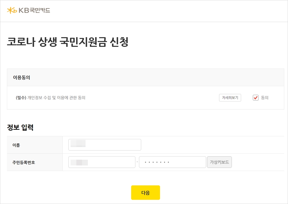 2. 5์ฐจ ์ฌ๋์ง์๊ธ(์ฝ๋ก๋ ์์ ๊ตญ๋ฏผ ์ง์๊ธ) ์ ์ฒญ์ ์ ๋ณด๋ฅผ ์ ๋ ฅํฉ๋๋ค.